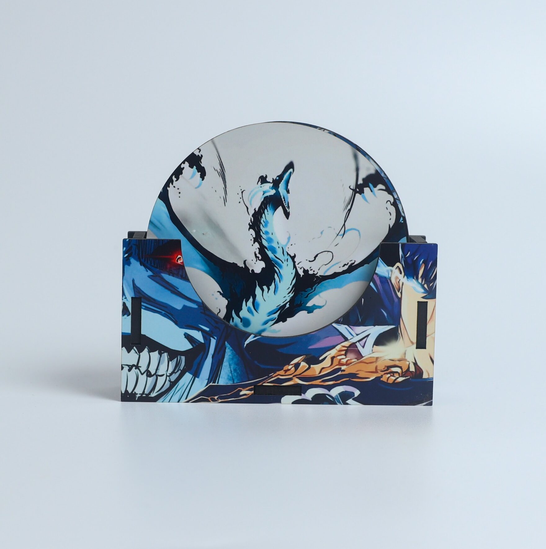 Inspired by the epic anime Solo Leveling, this MDF coaster set brings Sung Jin-Woo’s power to your table. With bold laser-cut designs of iconic scenes and symbols, this set is a must-have for true fans.